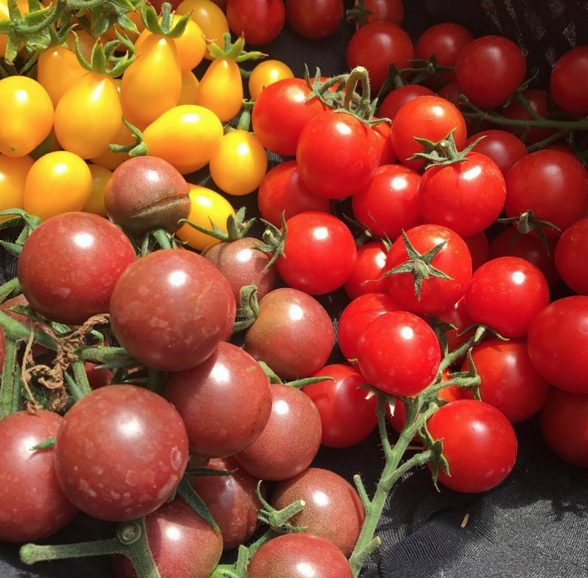Små gula, röda och rosa färgade tomater, söta och fruktiga – goda! Heirloom-kulturarv. En tomat som jag brukar typ odla varannat år, omtyckt.