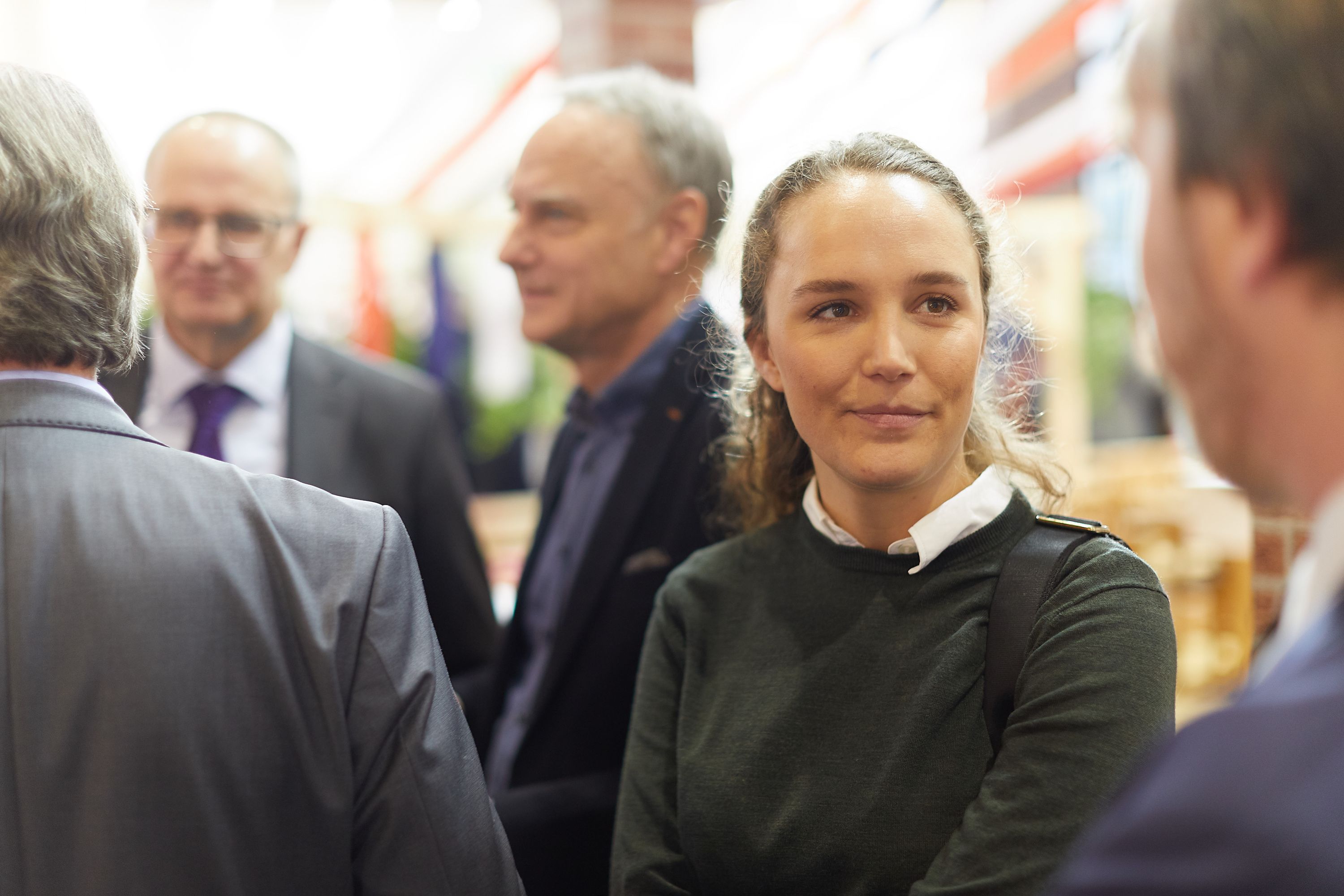 Föregående bildNästa bild Katarina Cumselius på mässa Här står jag och språkar i samband med invigningen av den svenska montern på Grune Woche. Foto: Bernhard Ludewig. Här står jag och språkar i samband med invigningen av den svenska montern på Grune Woche. Foto: Bernhard Ludewig.