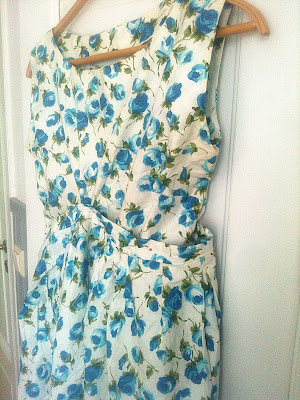 Han lagade mat till mig idag också, så jag hann med lite kvalitetspysseltid idag med. Så värst mycket fick jag inte sytt men jag letade i mina tyggömmor och hittade en finfin blåblommig tvådelad dress som min mormor haft. Den behöver sys in lite här och var och så tänkte jag sy ihop den så det blir en klänning. Sen vill jag gå på sommarbröllop i den!