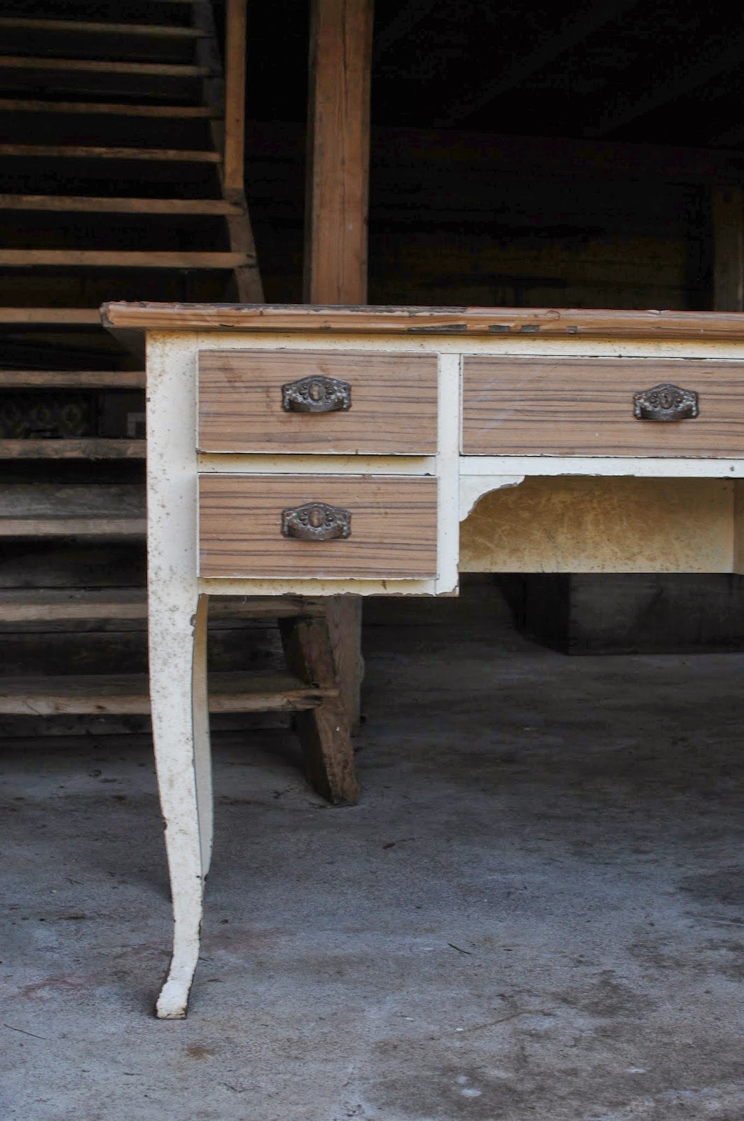 Jag trodde faktiskt att fyndandet i våra bodar och hus var över. Men tänka sig. Häromveckan var Jonas och jag och grejade med lite djur vi har i en ladugård några kilometer bort. Såklart har jag varit överallt där med en massa, men inte så ofta och inte på länge. På något vis har jag i alla fall glömt bort att det stod ett superfint skrivbord i mjölkrummet där!