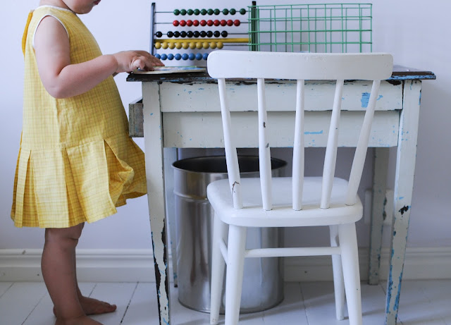 För säkert minst ett halvår sedan kom jag över en helt makalöst söt liten 60-talsklänning för bara några guldpengar på Erikshjälpen. Så välgjord och rejäl med små rutor och prydliga veck. Och precis rätt storlek för Edith.