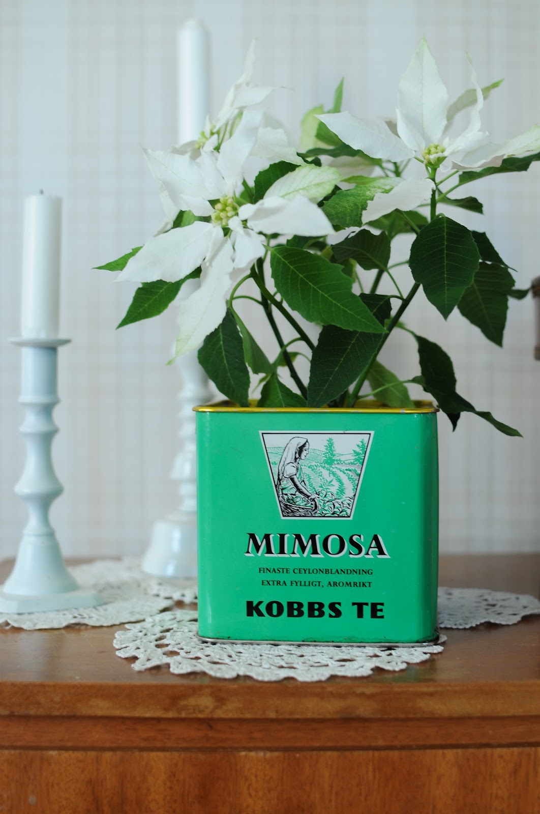 Julstjärnor är fina såklart. Särskilt den här varianten med smalare och lite mindre blad tycker jag. Och så gillar jag ju att plantera i allt annat än krukor. Krukor kan ju för all del vara fint det med, men burkar och andra bruksföremål blir lite mer spännande!