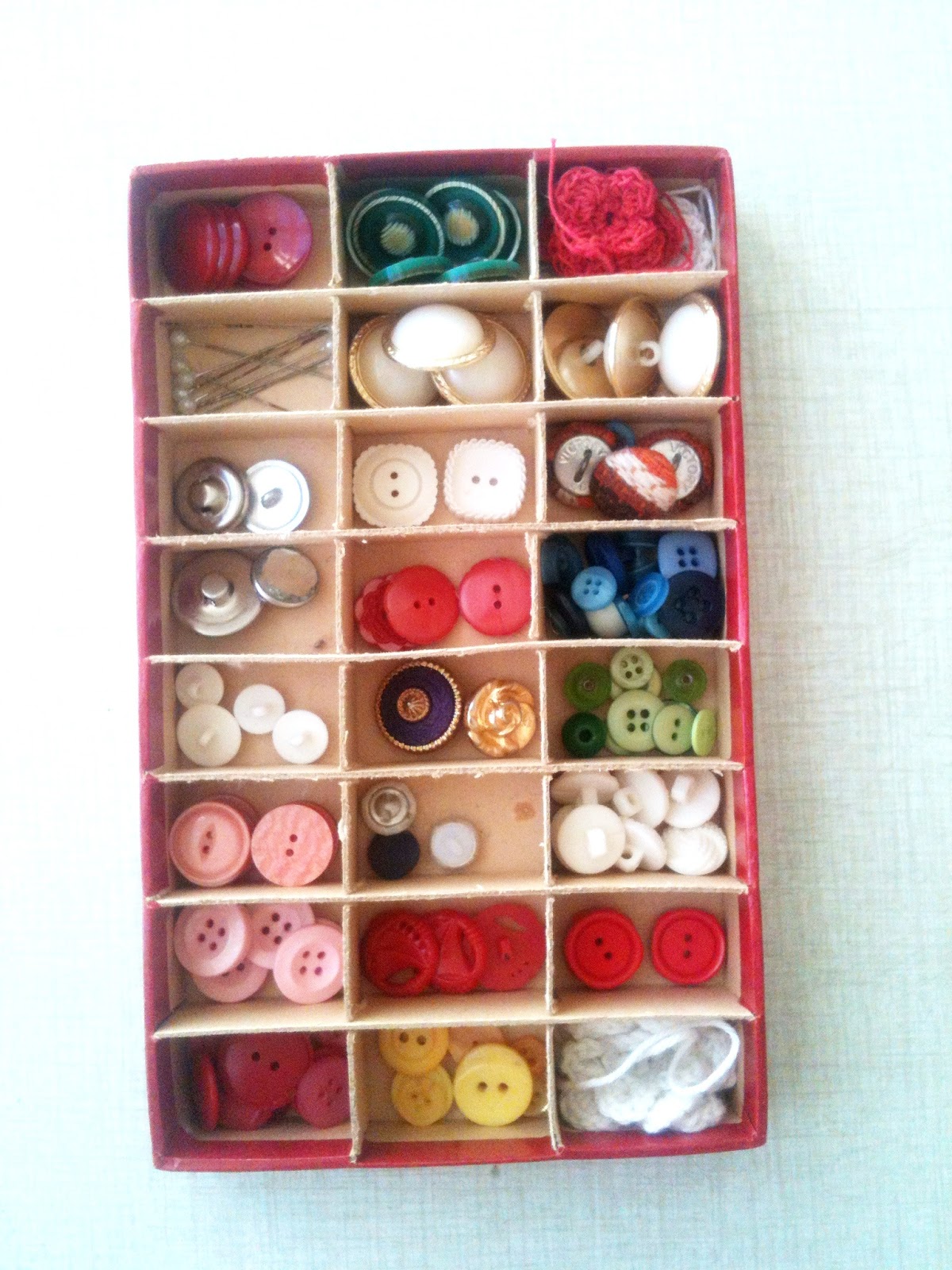 Jag håller egentligen på att storstäda huset inför morgondagens 30årkalas. Men man måste ju hitta på undanflykter från städningen ibland. Som att sortera finknapparna medan man beundrar sin nystädade sy och pysselhörna. Ja ni hör ju hur viktigt.