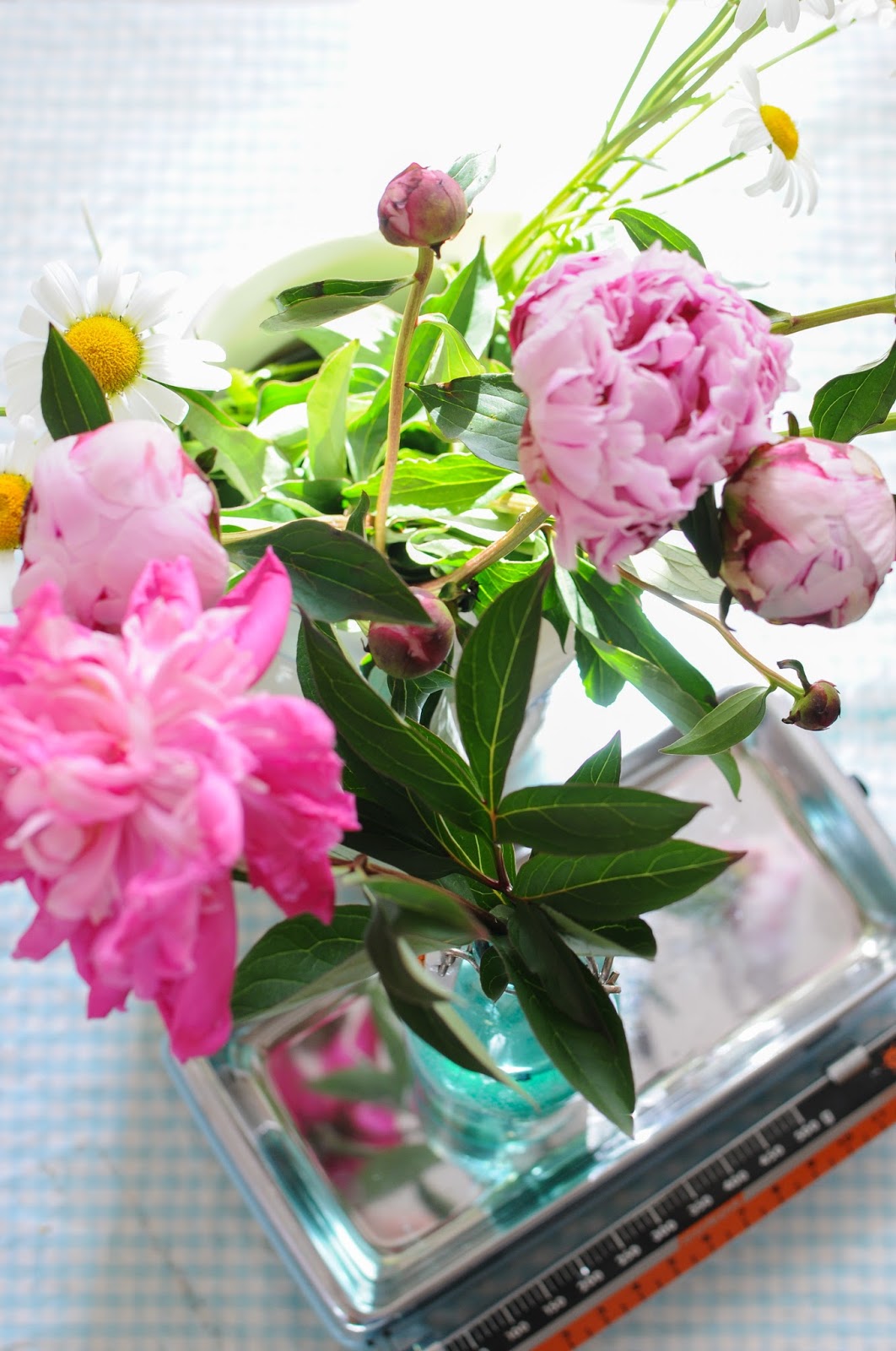 Just nu hänger jag mest här. Vid köksbordet och luktar på pionerna samtidigt som jag övar inför lördagens festligheter. Ett par av våra bästa vänner ska nämligen gifta sig. Det kommer bli tidernas finaste bröllop skulle jag gissa på, och jag har fått äran att spela på vigseln! Så pioner och fioler idag, och på lördag tar jag fiolen under ena armen och Jonas i den andra och sticker på bröllop. Kameran ska jag försöka få med i nån hand också så ni får se lite grann. Festen ska hållas på en loge på brudgummens föräldragård och jag tror det kommer bli fantastiskt fint. Håll tummarna för fint väder!