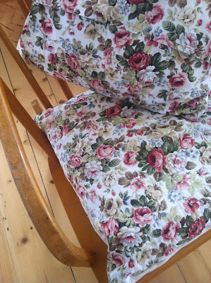 I alla fall så började jag rota i tygskåpet efter nåt tyg som skulle kunna passa. Och långt in hittade jag en gardinkappa som jag enligt prislappen betalat 24 :- för på Erikshjälpen någongång. Och så har den hamnat i skåpet och blivit bortglömd. Hur kunde det hända liksom?! Passar perfekt in i vårt finrum, helt magiskt fint tillsammans med drömlampan.