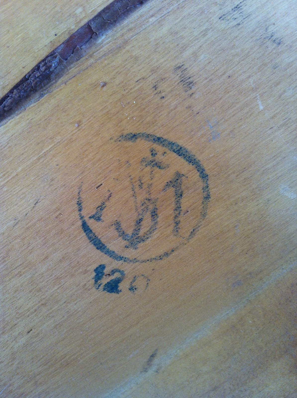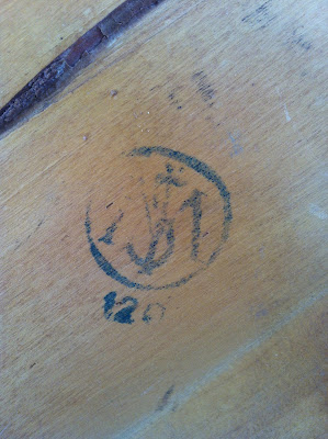 Gungstolen fyndade jag för 50 spänn tidigare i somras. Har fått för mig att det var ett riktigt kap, då jag såg en likadan för närmare 1000-lappen… Nån som känner igen den och vet var den kommer ifrån? Finns en stämpel på undersidan som är lite svårtydd men ser ut så här.