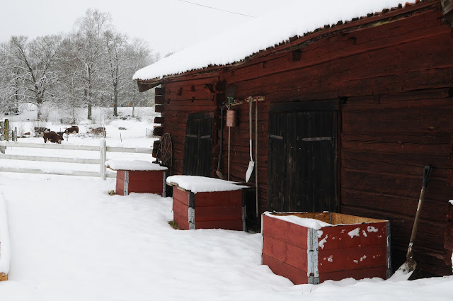 Helt bedårande så klart. Och med en klar och ljudlig stämma som uppfordrande skrek efter sin mamma och krävde mat. Mamma Lisa var däremot inte riktigt med på noterna, och verkade inte förstå alls att killingen var hennes. Nybörjare som vi är på getter visste jag inte riktigt hur jag skulle bära mig åt, men när jag ätit frukost och gått ut igen, och geten fortfarande inte verkade vilja kännas vid sin killing över huvud taget fick jag blanda mig i. Lisa är en ganska skygg get, men otroligt tillgiven när hon väl låter sig bli närmad och klappad. Och ganska snart upptäckte jag att hon lät killingen komma och dia om jag höll i henne, klappade och viskade lugnande. Så det har varit min uppgift idag. Att nästan en gång i timmen hålla om, lugna och klia i pannan på mamma Lisa. Då har lille Kalle fått äta. Och till kvällen började hon kunna stå stilla och ge honom mat utan stöd. Fantastiskt skönt för mig som trodde jag skulle få sova i stallet i natt.