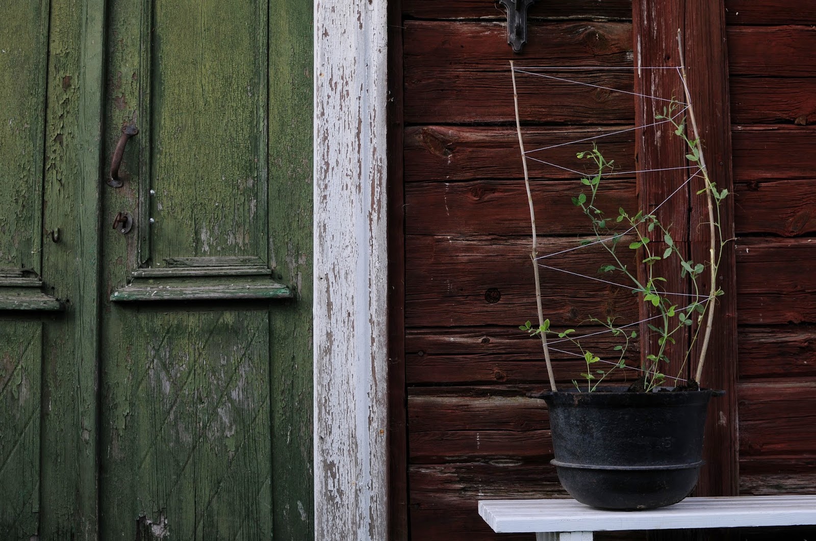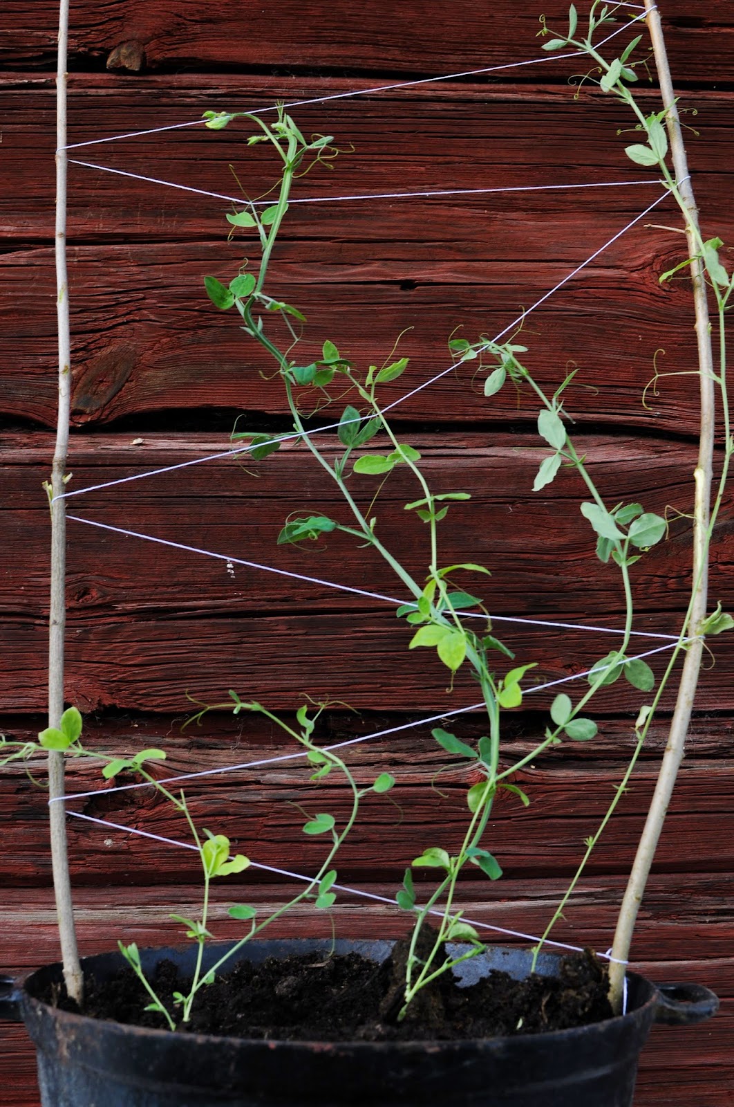 Luktärterna har fått flytta ut. I en stor, gammal järngryta planterade jag dem, och nu står de nere vid vår lillstuga i trädgården. Här planerar jag att sitta ljumma sommarkvällar om bara några veckor och känna doften från den stora schersminbusken alldeles intill.