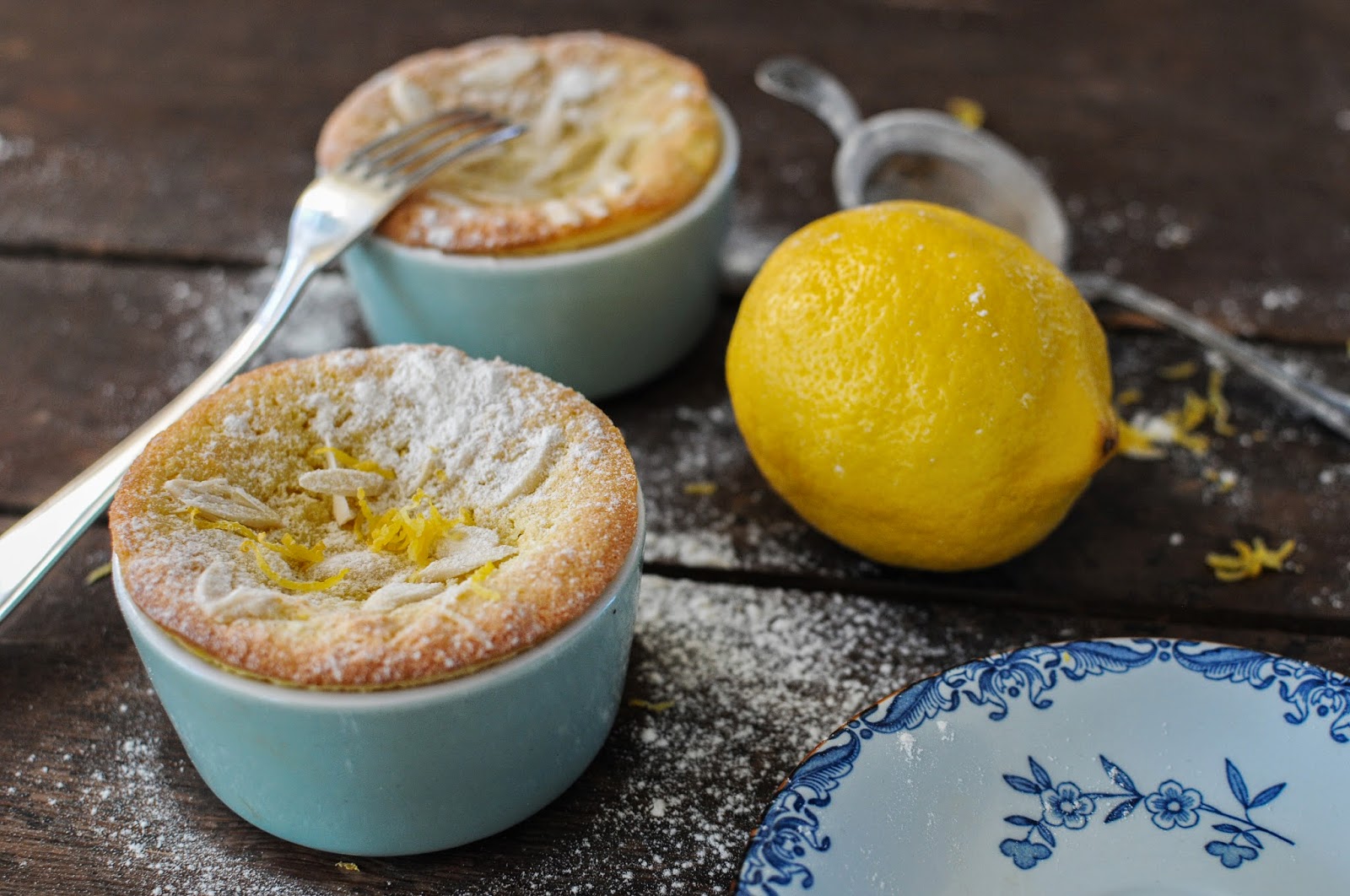 Av diverse anledningar hade jag en hel massa citroner och ricottaost i kylen som nog skulle må bäst av att användas idag. Funderade några varv på vad det skulle kunna tänkas bli, och bestämde mig sedan efter att ha läst ett gäng recept på olika kak- och pajvarianter för att testa små citronkakor med ricotta, gjorda på mandelmjöl. Istället för en stor kaka gjorde jag alltså några mindre i portionsformar.