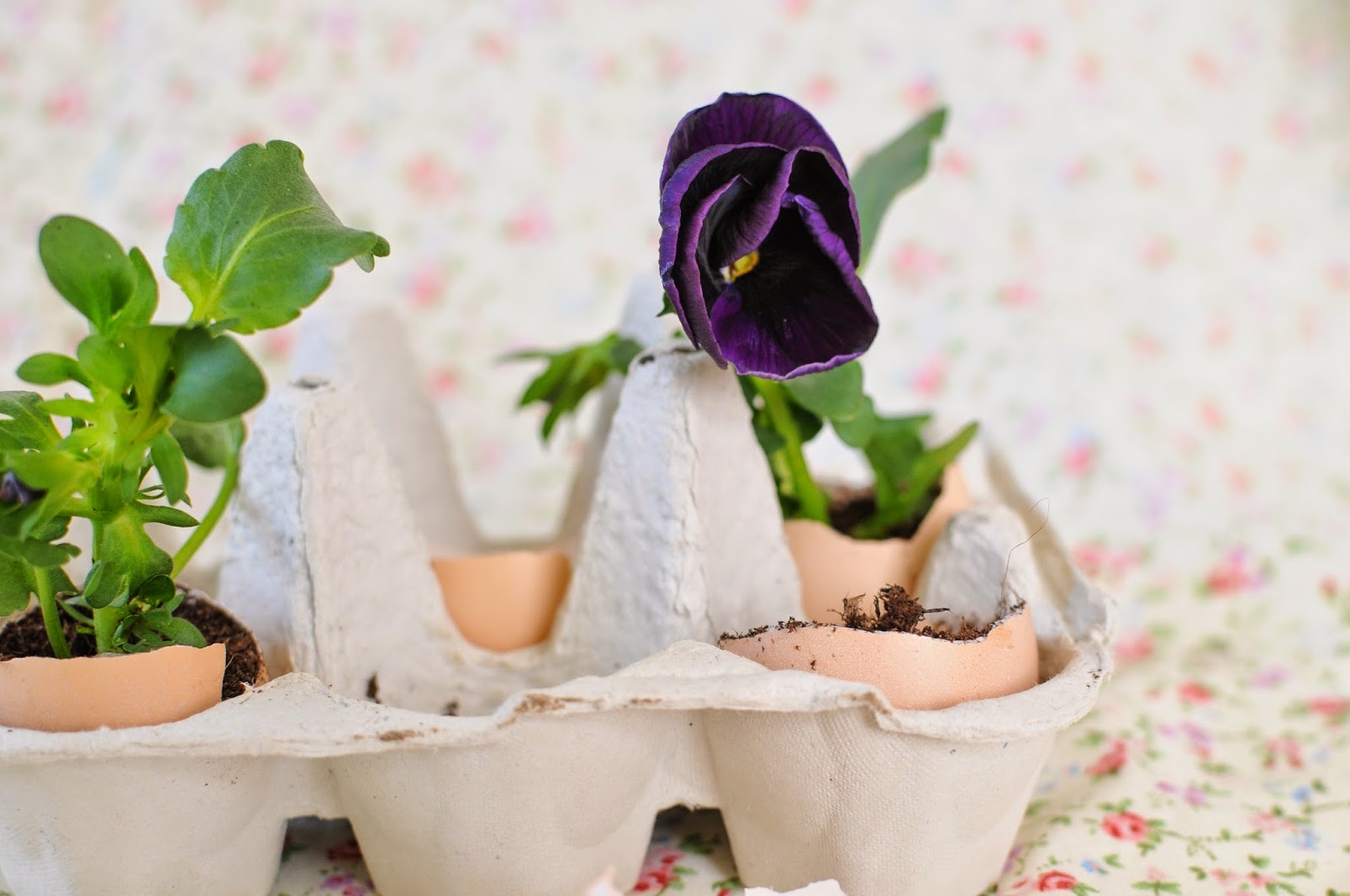 Enklaste påskpyntet. Verkligen enklaste. Och enklast blir ju oftast finast om man frågar mig. Penséerna fick åka ned i lite mera jord efter att de förevigats, de mår nog bättre så. Men kanske att de får flytta ner i varsitt ägg igen och dukas fram på bordet lagom till påskaftonsmiddagen.