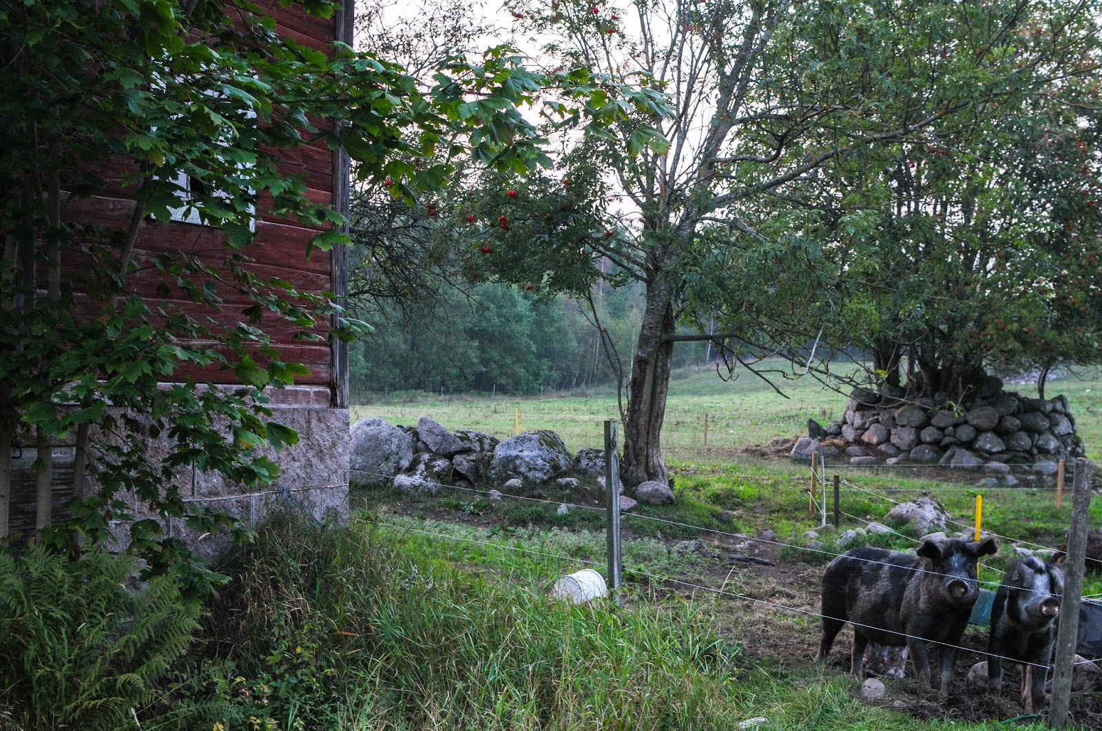 Jodå. Vi har gått och skaffat oss ett par grisar. Ett par fina, präktiga damer av sorten Linderödssvin. Så det har minsann kommit hit både getter och grisar i sommar.