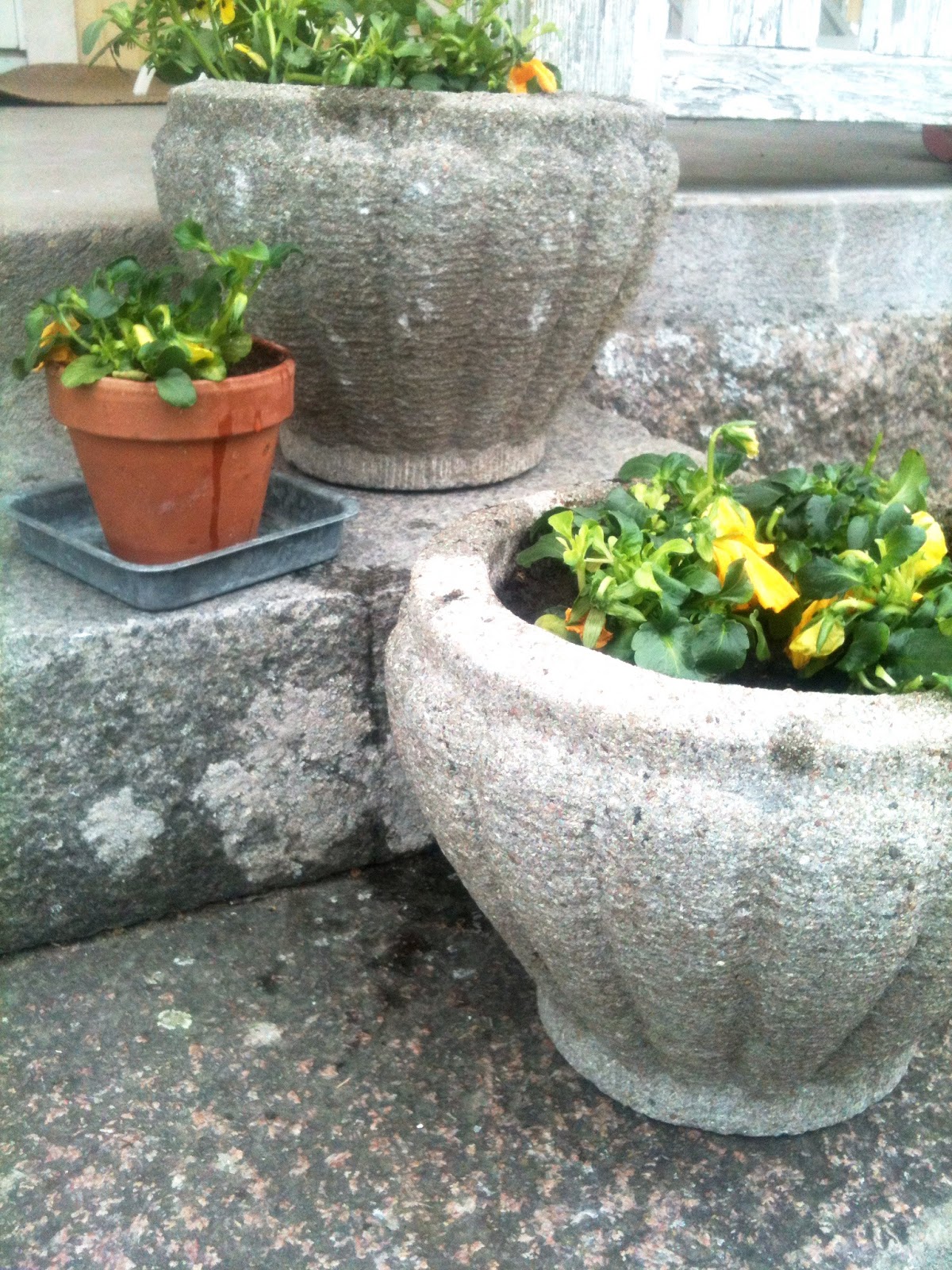 Lite vårfix ute har jag ju hunnit med också. Jag blir alltid så inspirerad och vill greja och planera hur mycket som helst för trädgården på våren. Sen lägger sig den inspirationen ungefär lika snabbt som ogräset börjar växa i rabatterna. Men ett par balkonglådor och några krukor brukar till och med jag kunna hålla liv i ett tag! Penséer och små violer är så otroligt tacksamma. Så pigga och vackra och tål till och med att glömmas bort ibland. Nyper man bort vissna blommor kan de fortsätta att blomma halva sommaren om inte längre. Jag har alltid penséer på trappen på våren och tack vare det får jag alltid en fin liten penséodling i grusgången med eftersom de är så bra på att fröså sig själva. Finare ogräs får man leta efter.