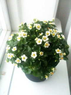 Imorgon är det vår, punkt slut. Vårdagjämning står det i almanackan i alla fall. Då måste det ju vara så. Jag låtsas inte om snöstormen utanför fönstret utan köper fina våriga blommor istället. Rosa Mårbackor är dom bästa. Och den vita ser nästan ut som vitsippor om man kisar och tittar på håll. Perfekt vårpepp!