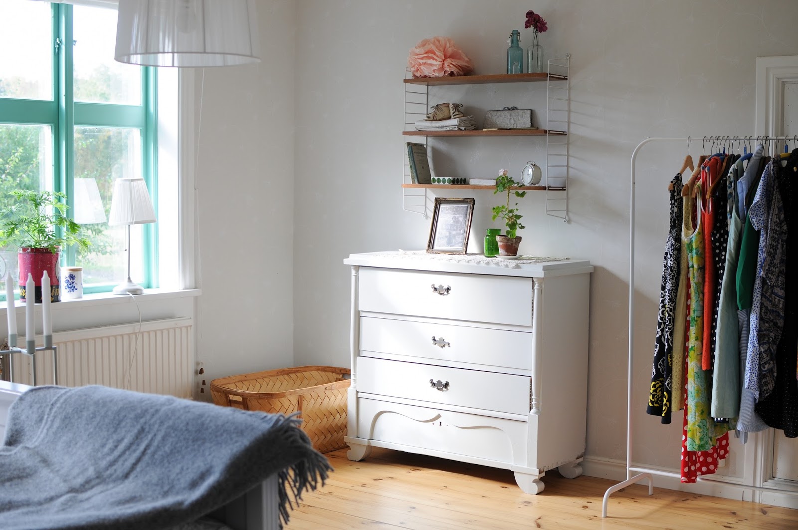Byrån stod i vår lillstuga på gården när vi flyttade in, men då målad i rött och blått. Som jag minns det så var just byrån mitt första projekt här i huset så den känns lite speciell. Efter den har många möbler och pryttlar kånkats in från bodarna och dammats av eller piffats till.