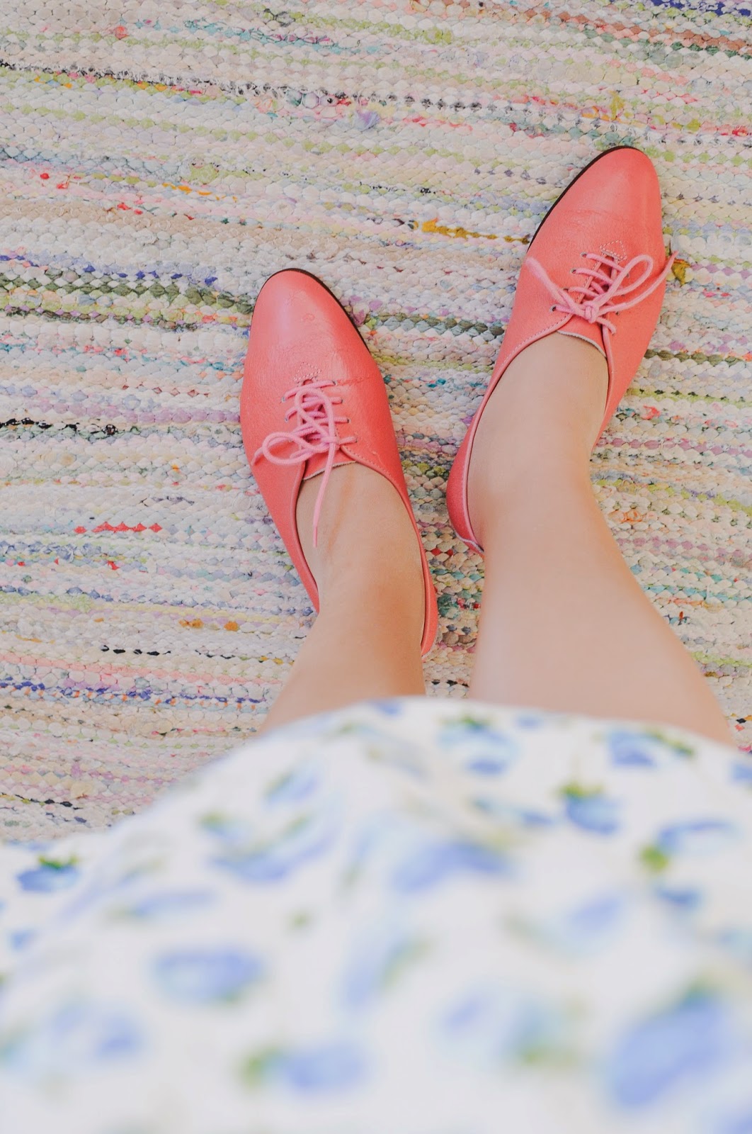 I mormors gamla soldräkt som jag sytt om till klänning, farmors virkade väska och förra helgens secondhandfynd aka bubbelrosa snyggskor gör jag våruppror idag.