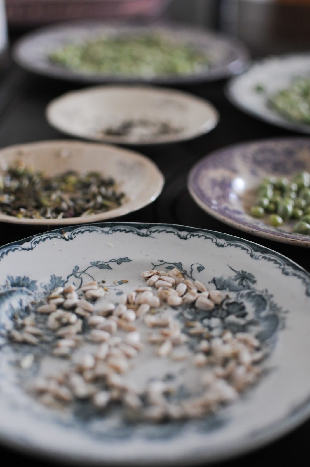 Och så lite av nästa sommars blomsterprakt. Frön från våra solrosor, blomsterkrasse, malva, rosenskära och sockerärter. Om några dagar ska jag lägga dem i små papperspåsar i väntan på våren!